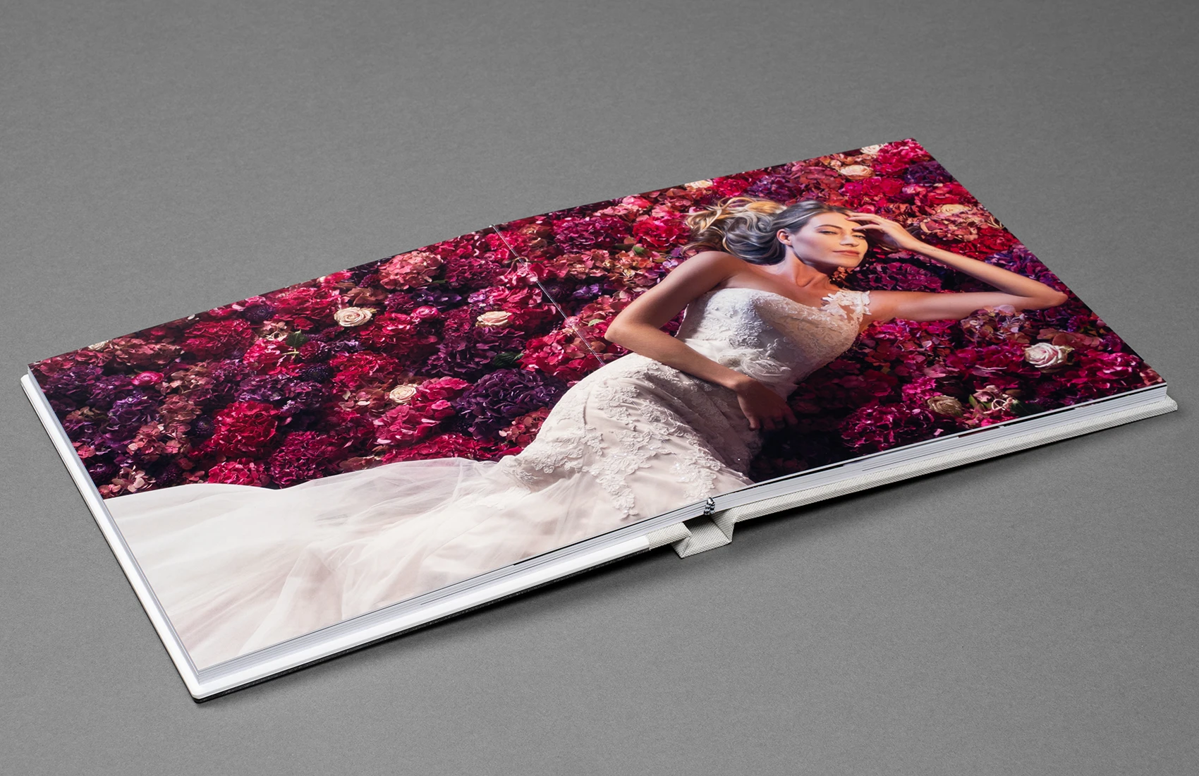 Our most popular album, layflat photo albums open flat, allowing for striking double page, edge to edge printing.